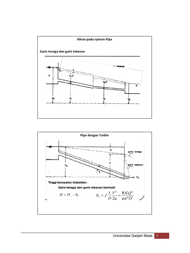 Universitas Gadjah Mada 1 Aliran Pada System Pipa Garis Tenaga Dan