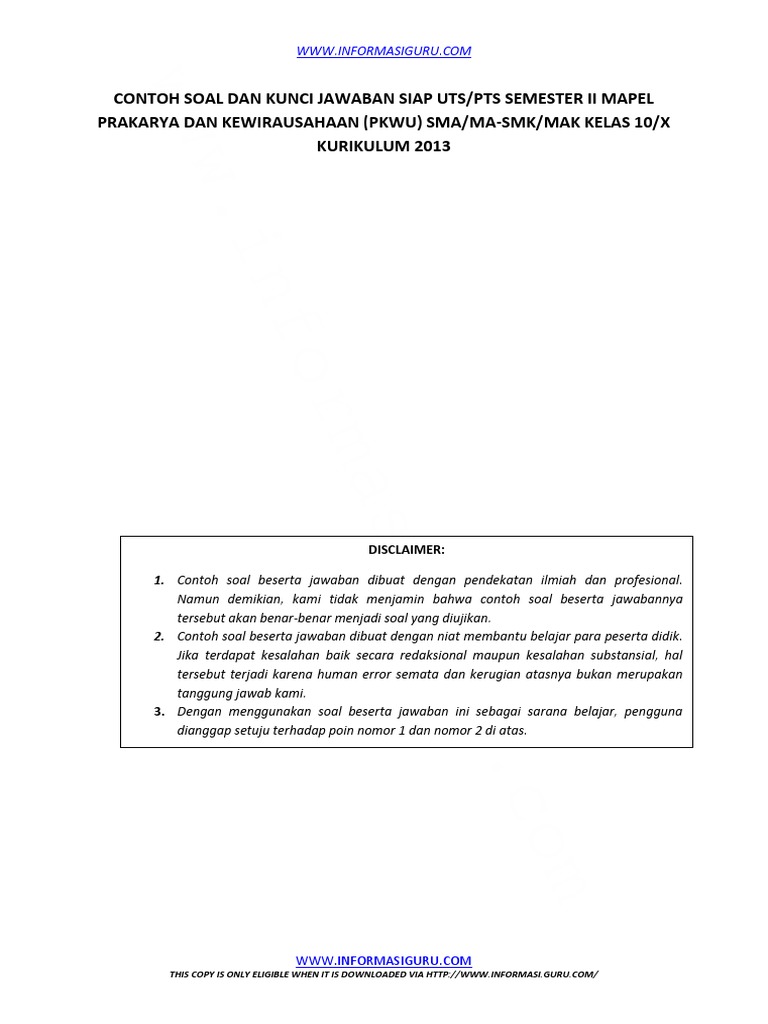 Soal Dan Kunci Jawaban Uts Pts2 Pkwu Sma Sederajat Kelas 11 K 13
