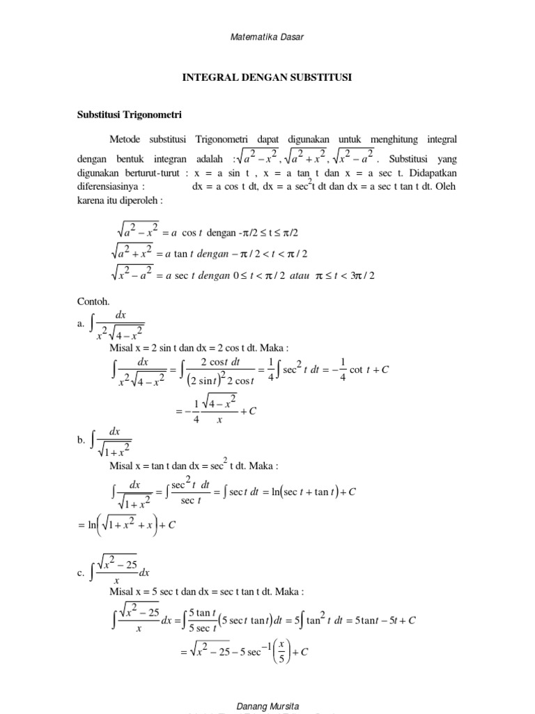 Soal Dan Pembahasan Integral Metode Substitusi Trigonometri 1 3
