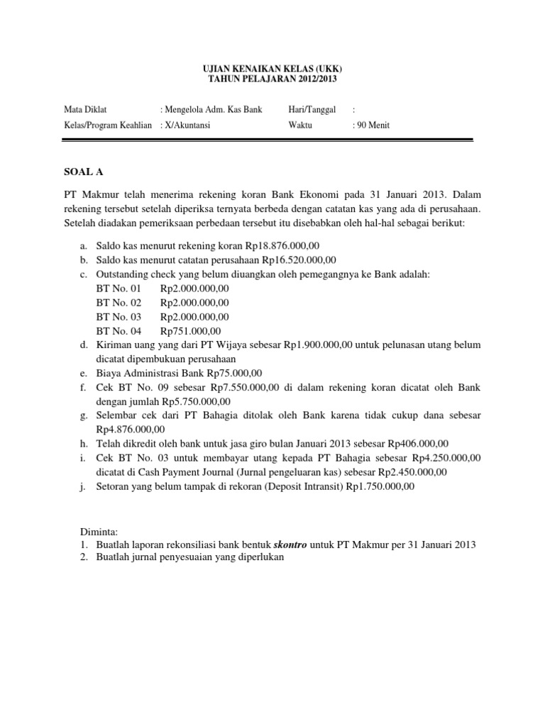 Soal Ukk Praktek Rekonsiliasi Bank