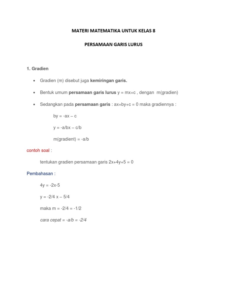 Gradien Dan Persamaan Garis Kelas 8 Smp