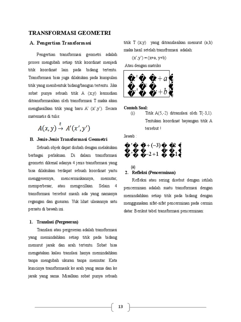 Soal Transformasi Translasi Refleksi Rotasi Dan Dilatasi Kelas