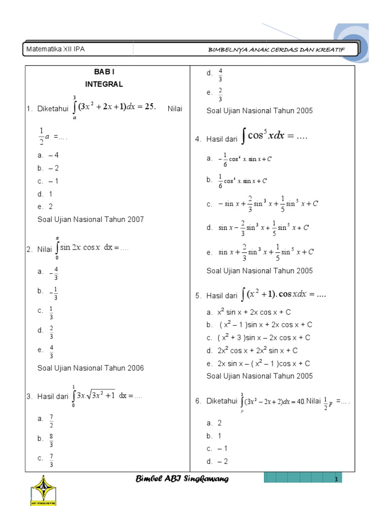Kumpulan Soal Matematika Kelas Xii Ipa