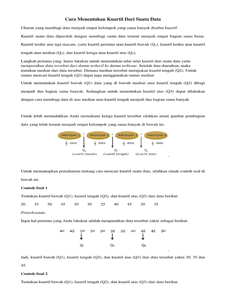 Contoh Soal Menghitung Kuartil Pada Data Tunggal Danioyo