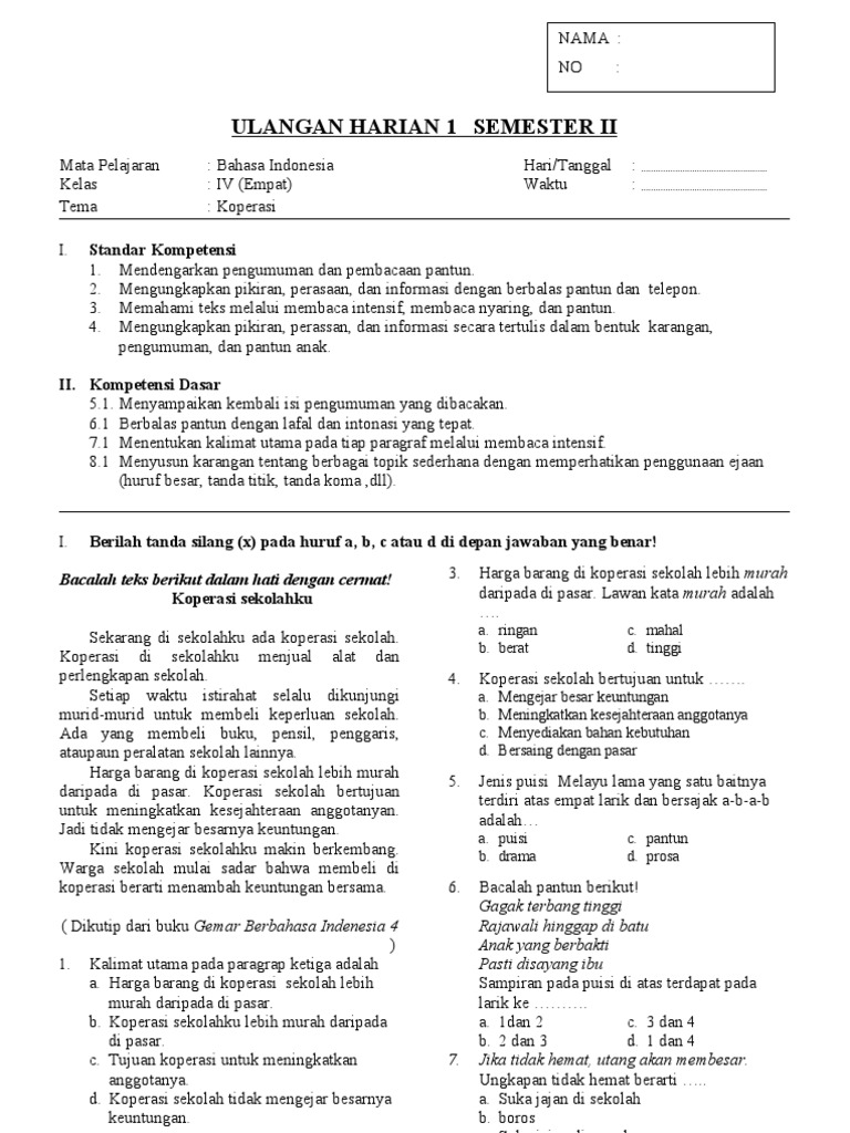 51 Info Contoh Soal Bahasa Indonesia Kelas Iv Semester 2 Pdf Doc