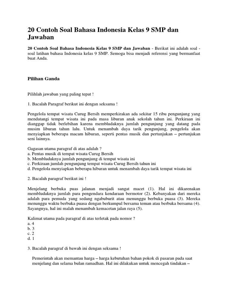 20 Contoh Soal Bahasa Indonesia Kelas 9 Smp Dan Jawaban