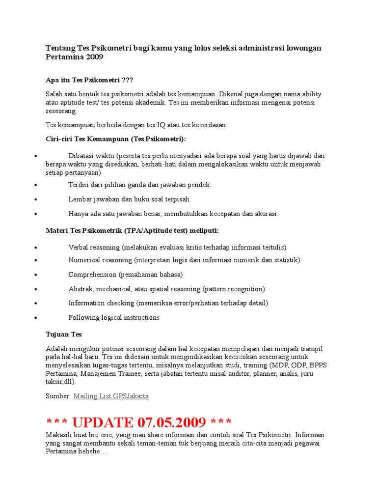 Contoh Soal Psikotes Tes Iq Dan Kunci Jawaban Pdf