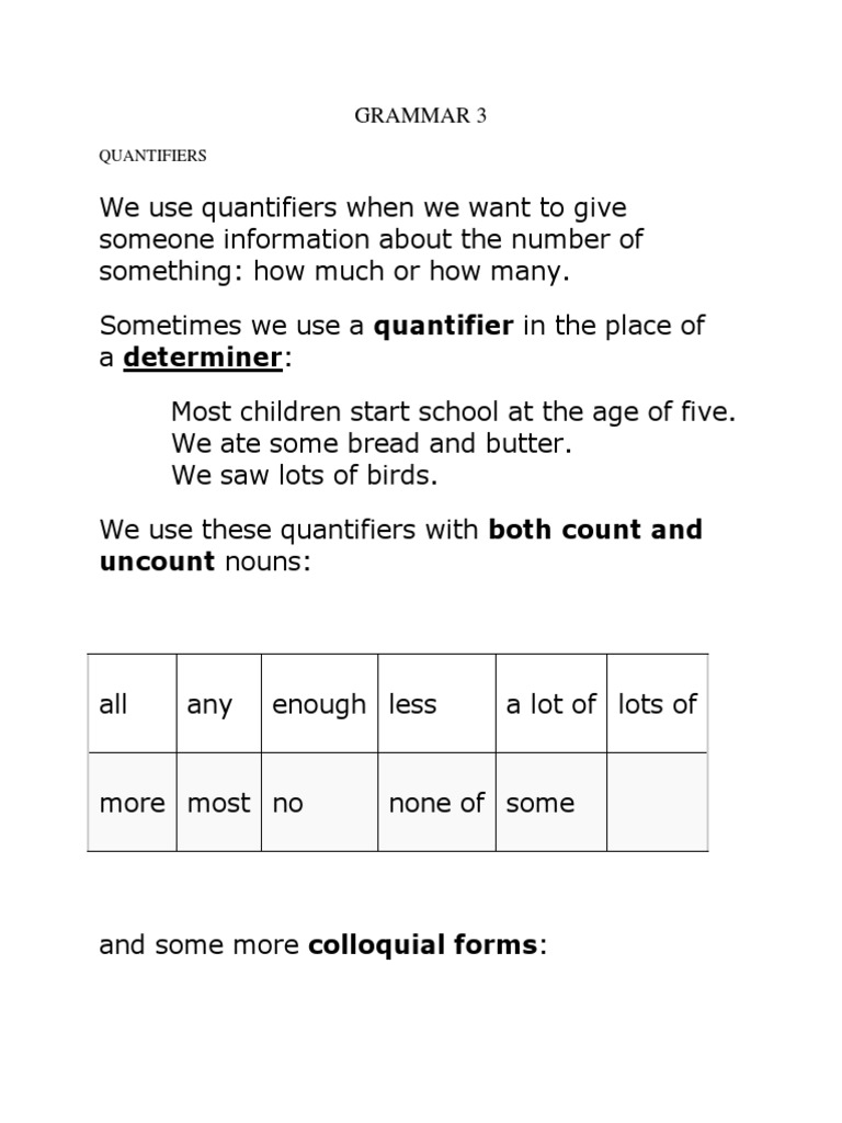 Quantifiers Grammar 3 Grammatical Number Noun
