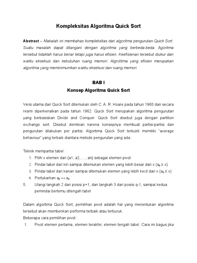 Quicksort Informatika Komputer 2757 Raoul Albert Kidumu