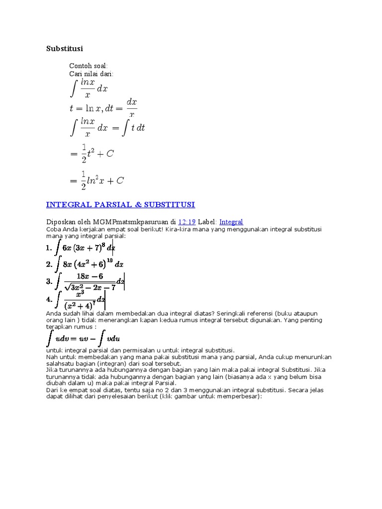 Penyelesaian Integral Substitusi Dan Integral Parsial Situs