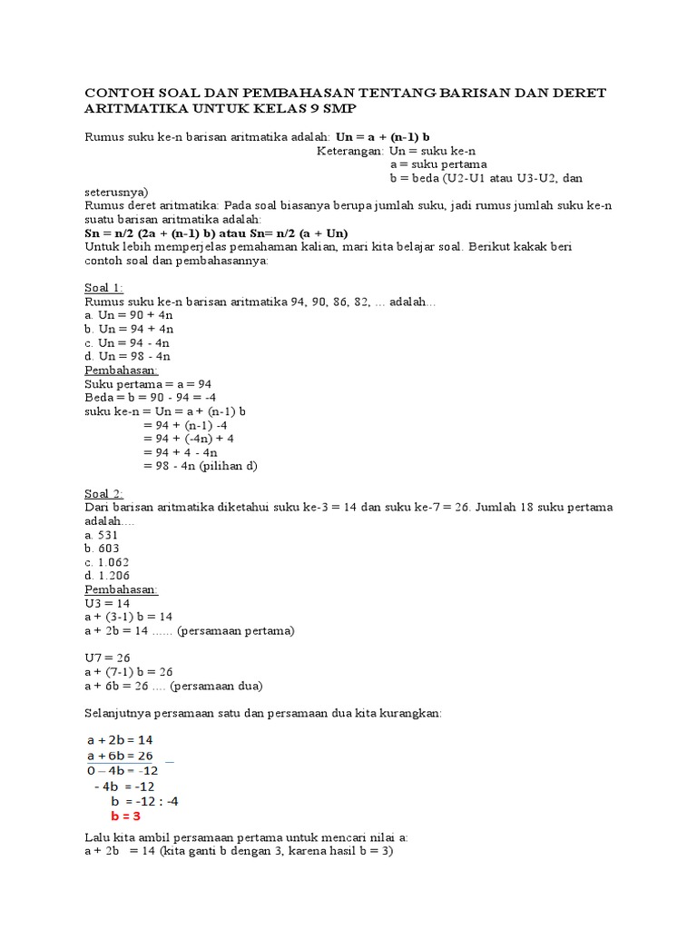 Contoh Soal Deret Aritmatika Dan Jawabannya Contoh Soal Jawab