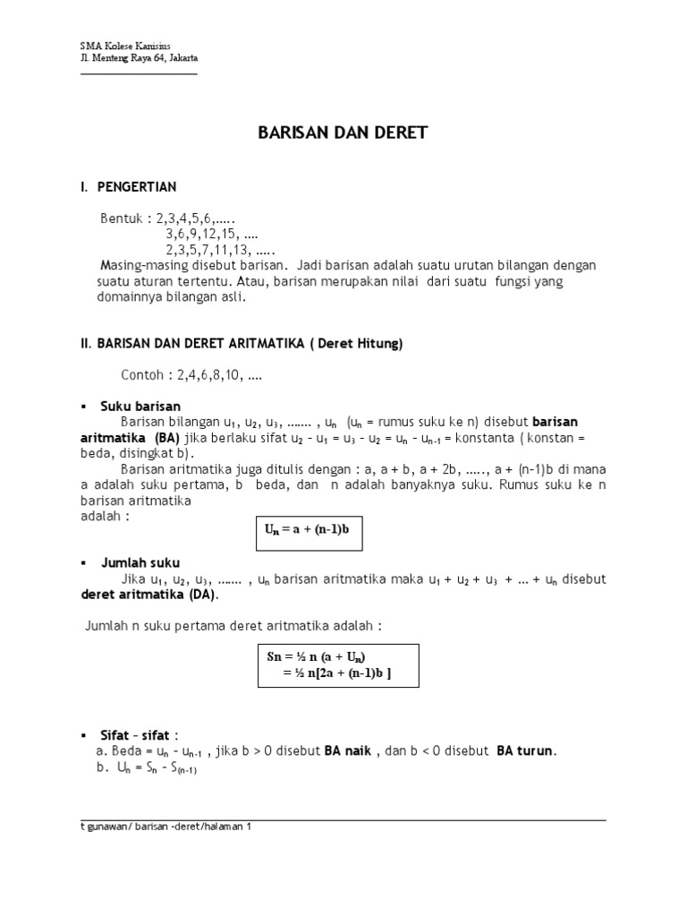 Barisan Deret Aritmatika Geometri Catatan Kuliah