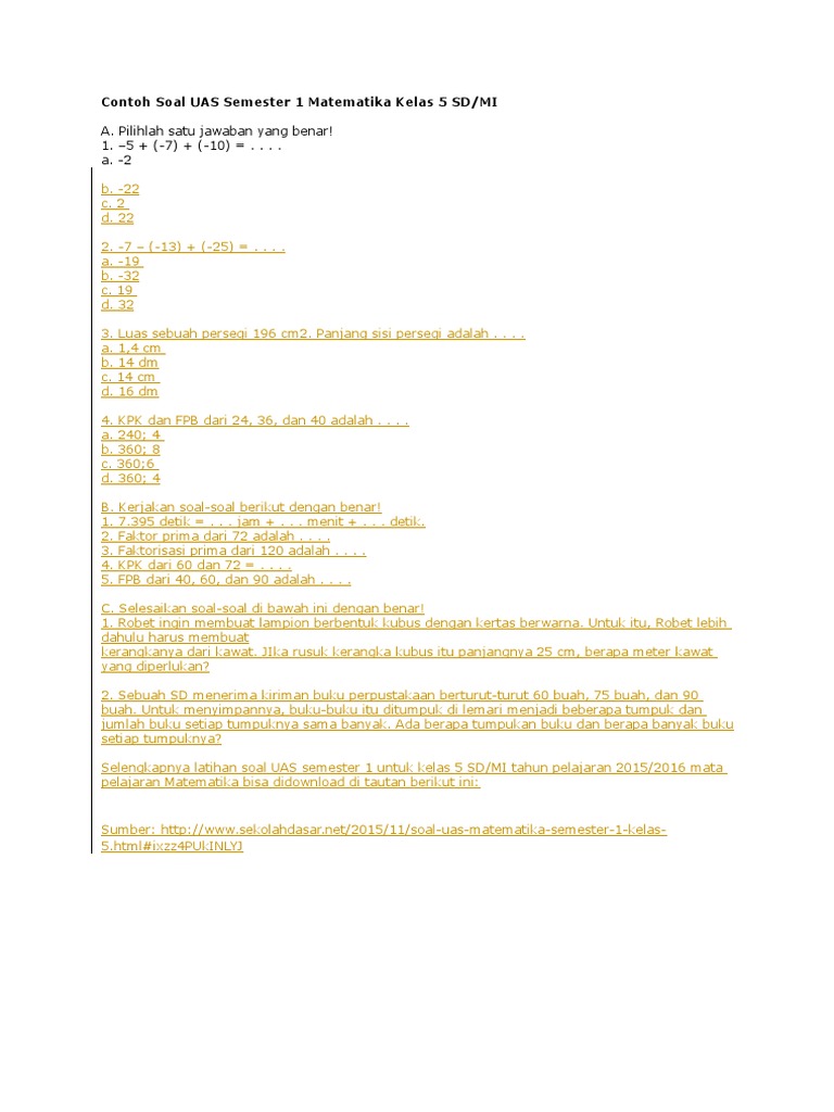 Soal Uas Kelas 5 Semester 1 Dan Kunci Jawaban Kumpulan Koleksi
