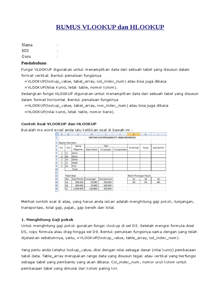 Latihan Soal Excel Dengan Fungsi Logika Vlookup Dan If Docx