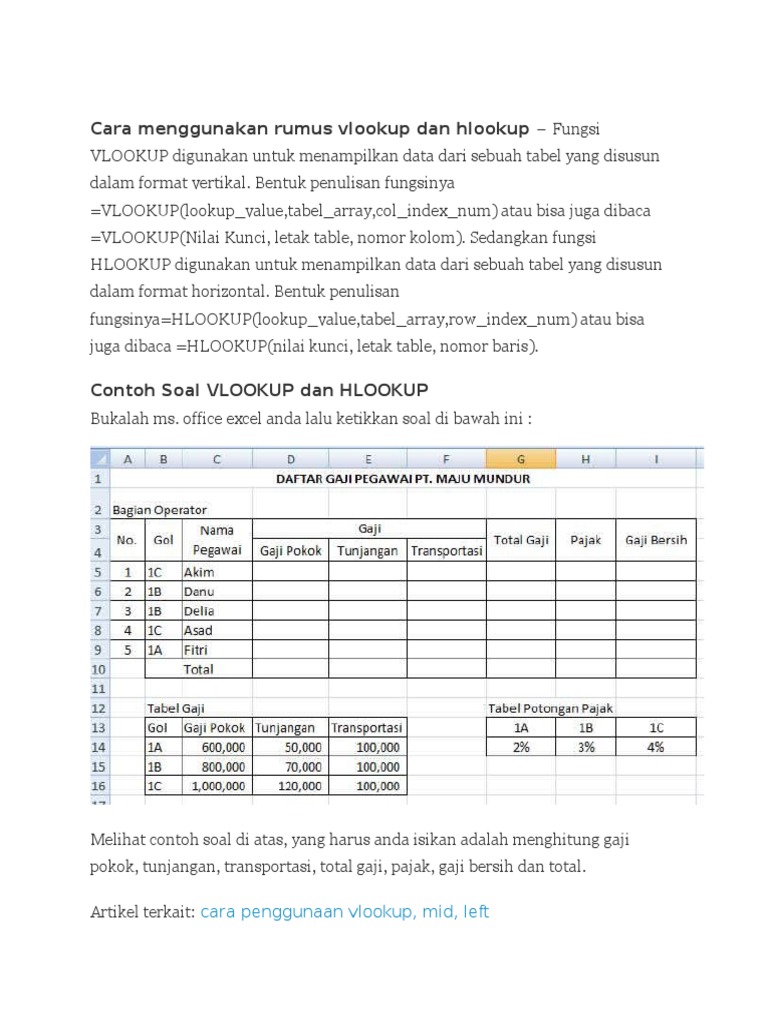 Contoh Soal Microsoft Excel 2007 Fungsi If Vlookup