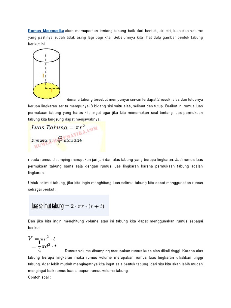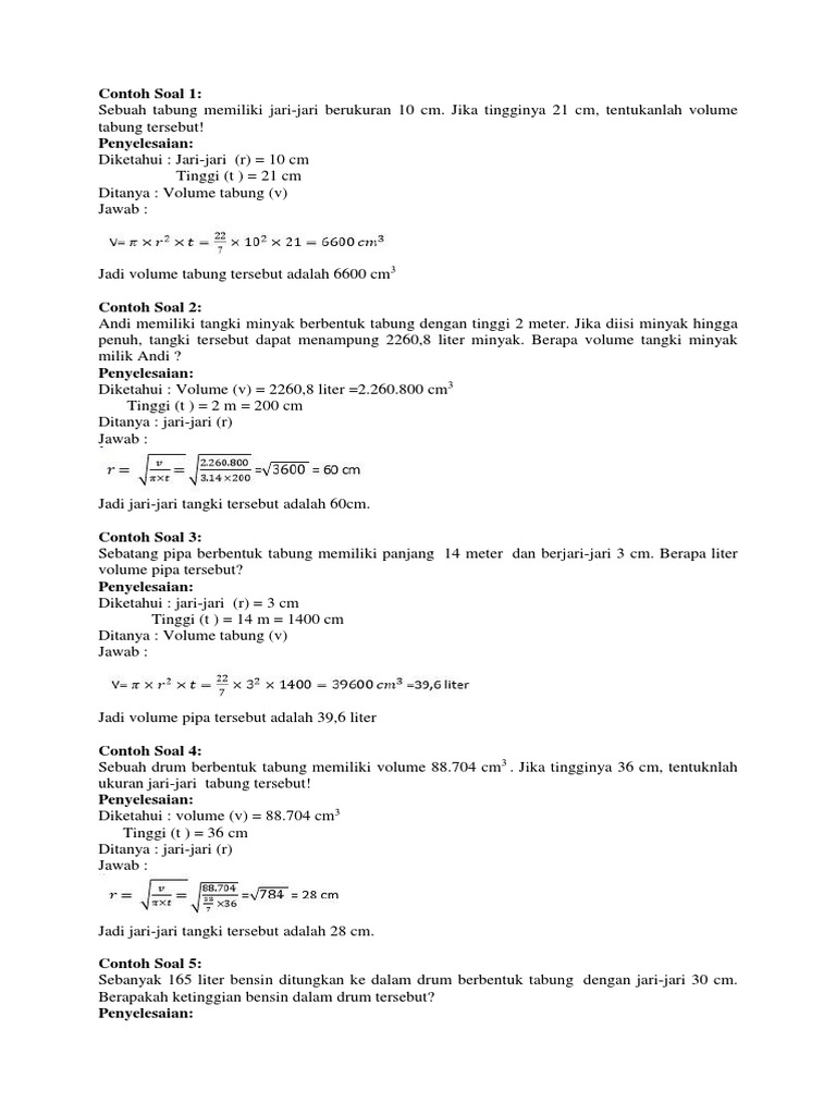 Contoh Soal Volume Tabung Matematika 6 Sd Matematika Dasar