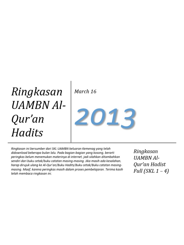 Soal Uambn Ma 2016 Al Qur An Hadits