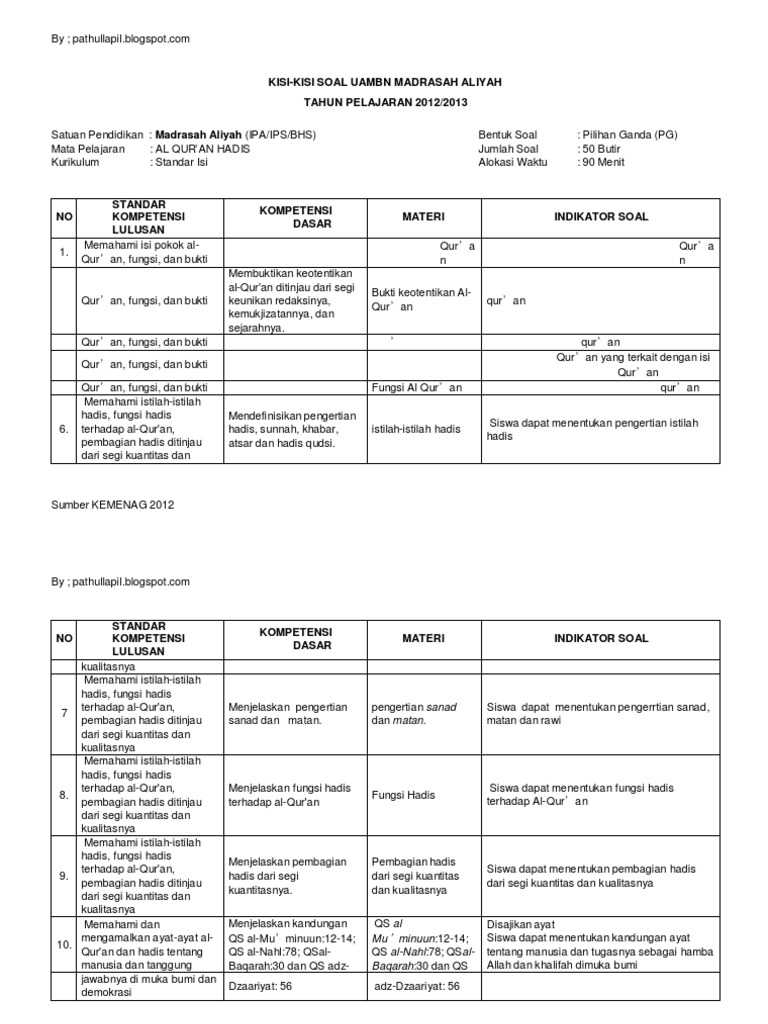 Kisi Kisi Soal Al Qur An Hadits Uambn Mi Mts Dan Ma Tahun