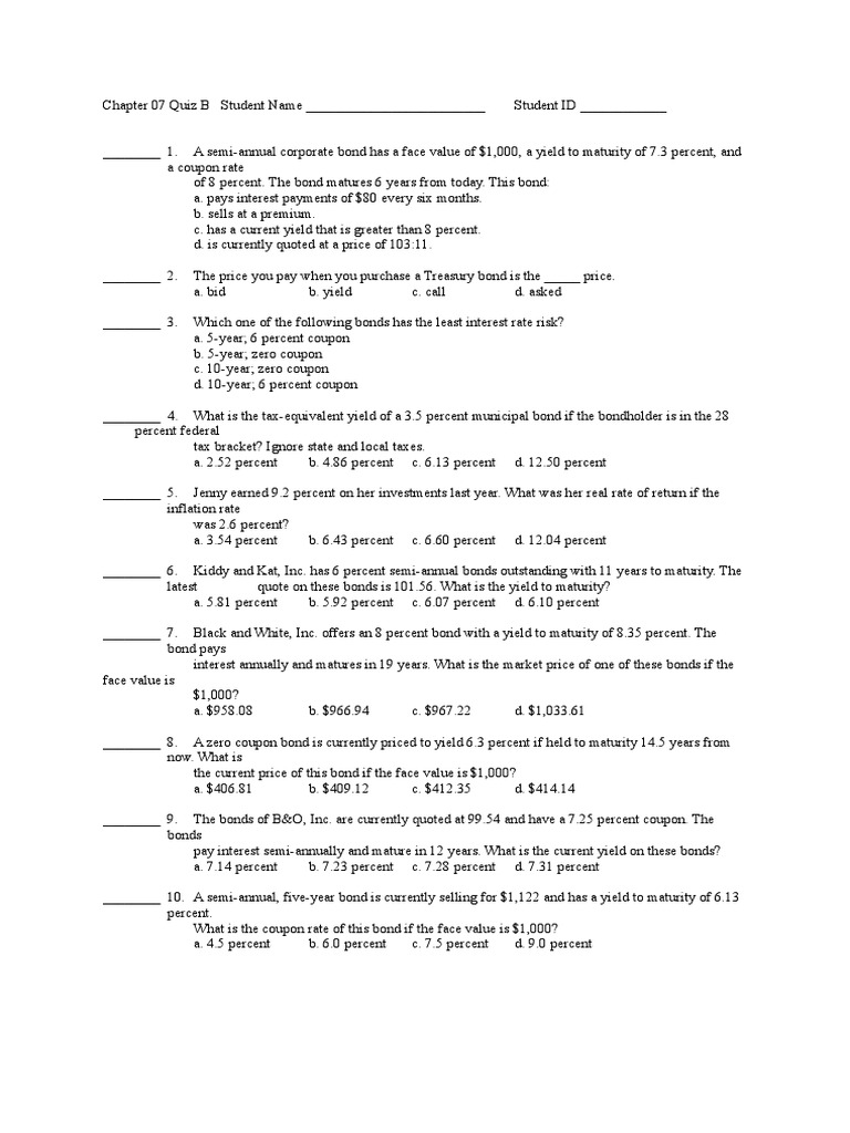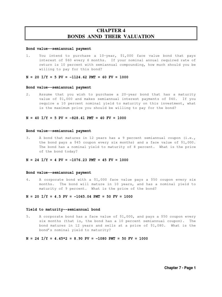 Soal Chapter 7 Penilaian Obligasi Doc Bonds Finance Yield