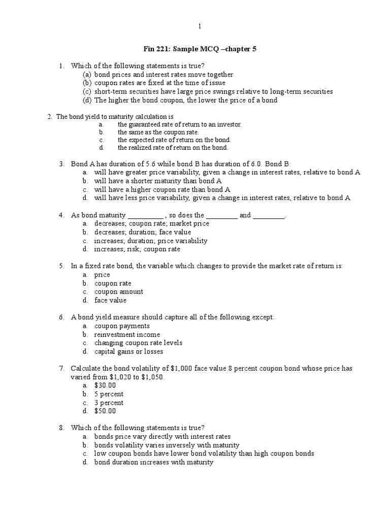 Mcq5 Doc Bond Duration Bonds Finance
