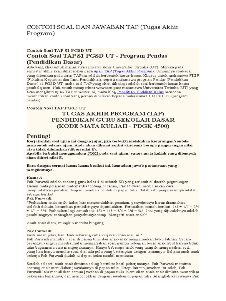 Soal Tugas Akhir Program Ut Pgsd Livinxtreme