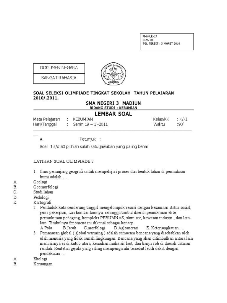 Contoh Soal Olimpiade Ips Smp Dryxsonar S Blog