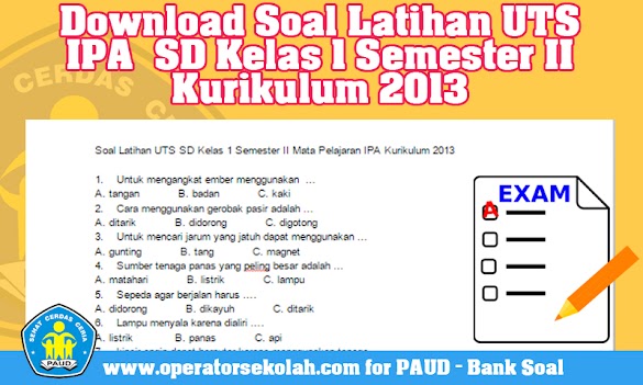 Soal Latihan UTS IPA SD Kelas 1 Semester II Kurikulum 2013 ini berisikan soal isian atau essay dan pilihan ganda sebagai rujukan dan materi latihan. Dapatkan latihan soal ini pada link berikut ini: